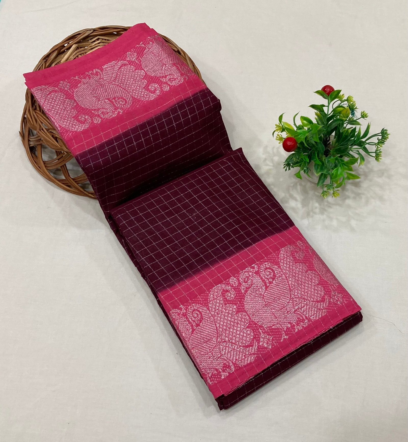Saree with contrast blouse and contrast pallu