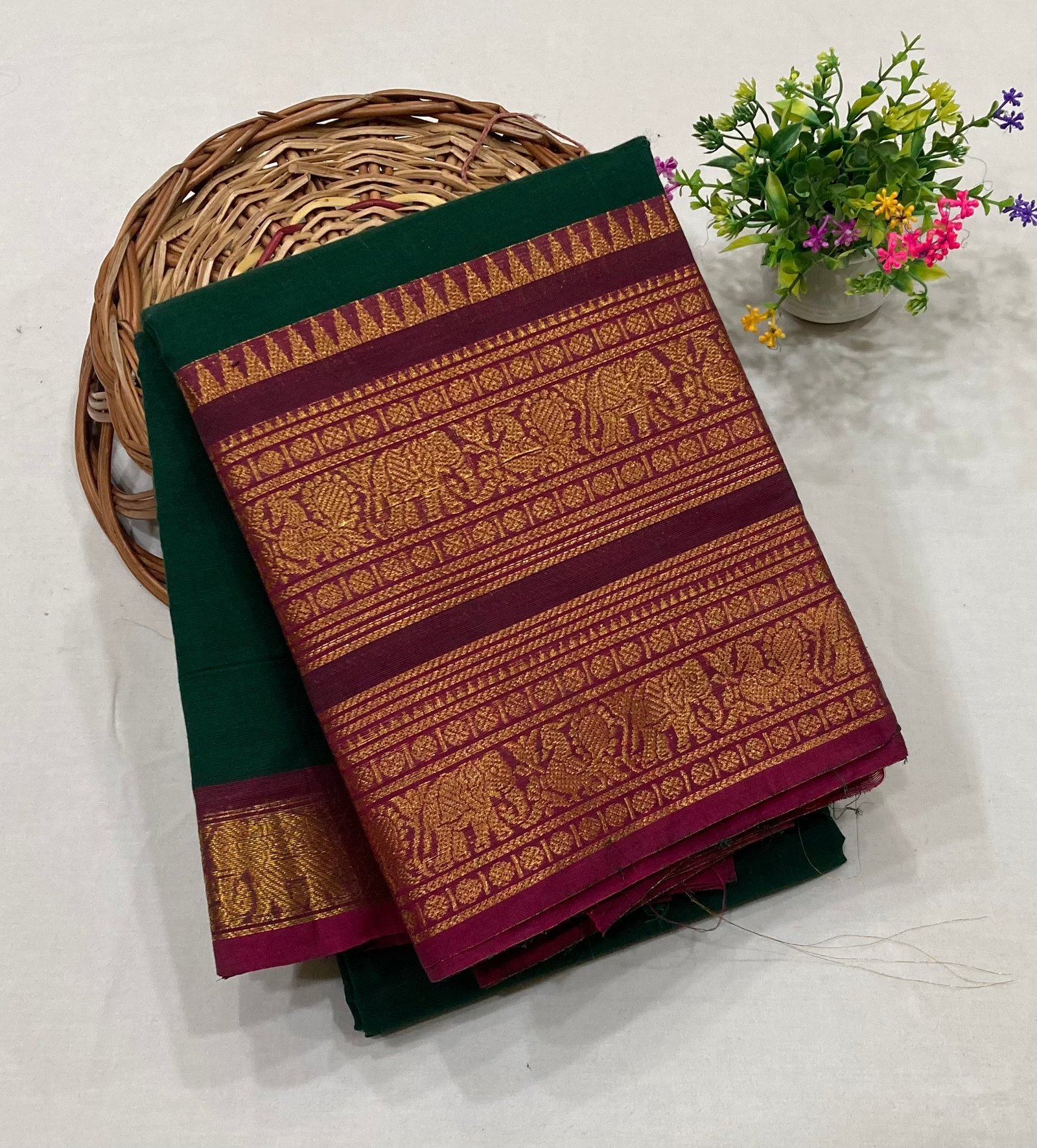 Very beautiful ❤️❤️❤️ green with Rani Pink border it’s very rare … Thank you so much