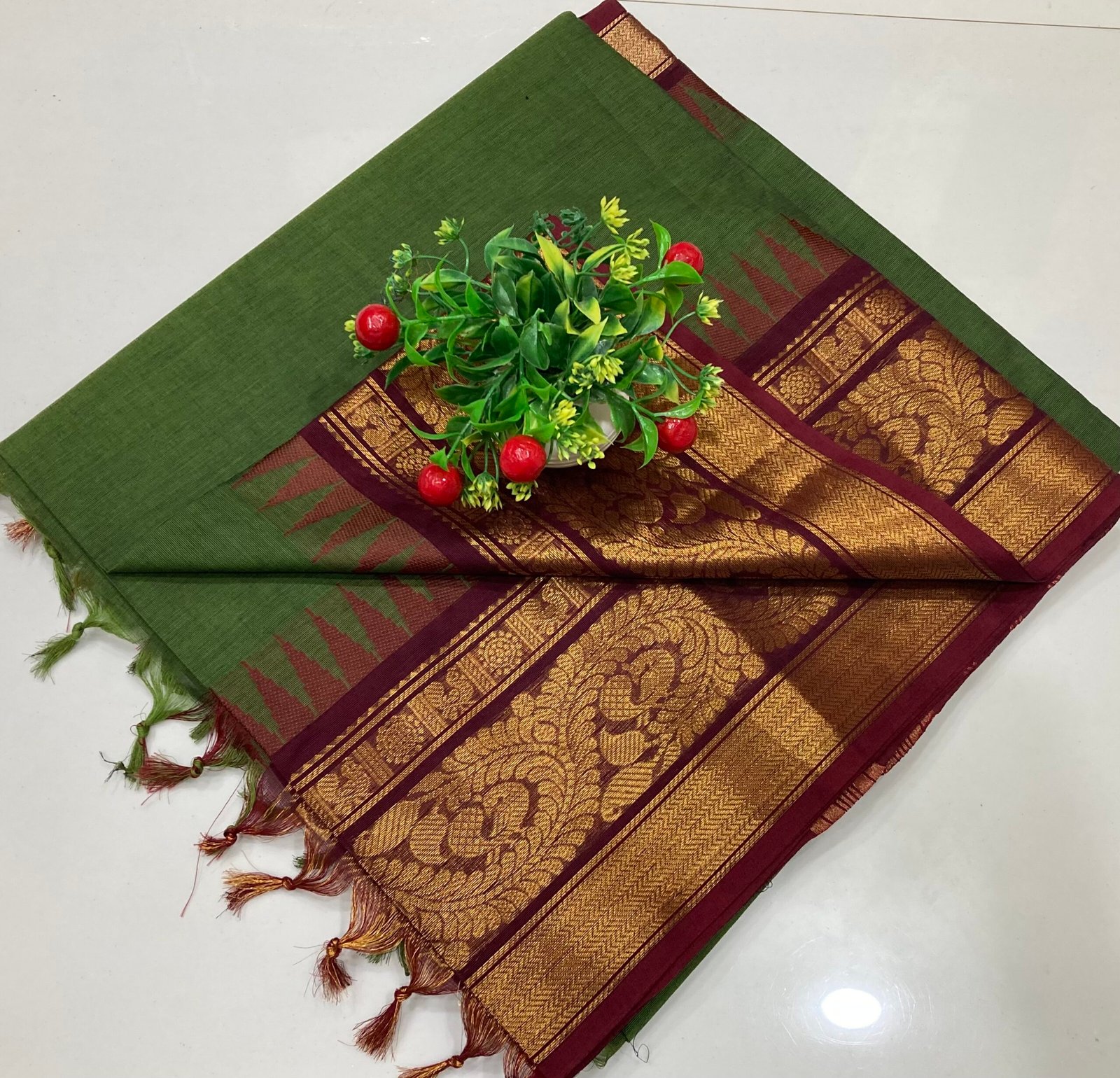 Long border Kanchi cotton sarees with running blouse