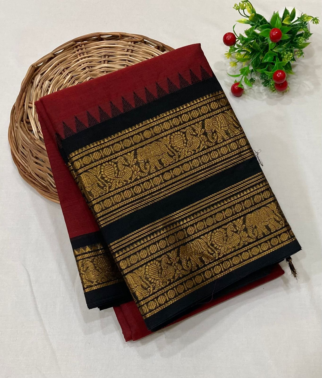 Long border kanchi cotton sarees with running blouse