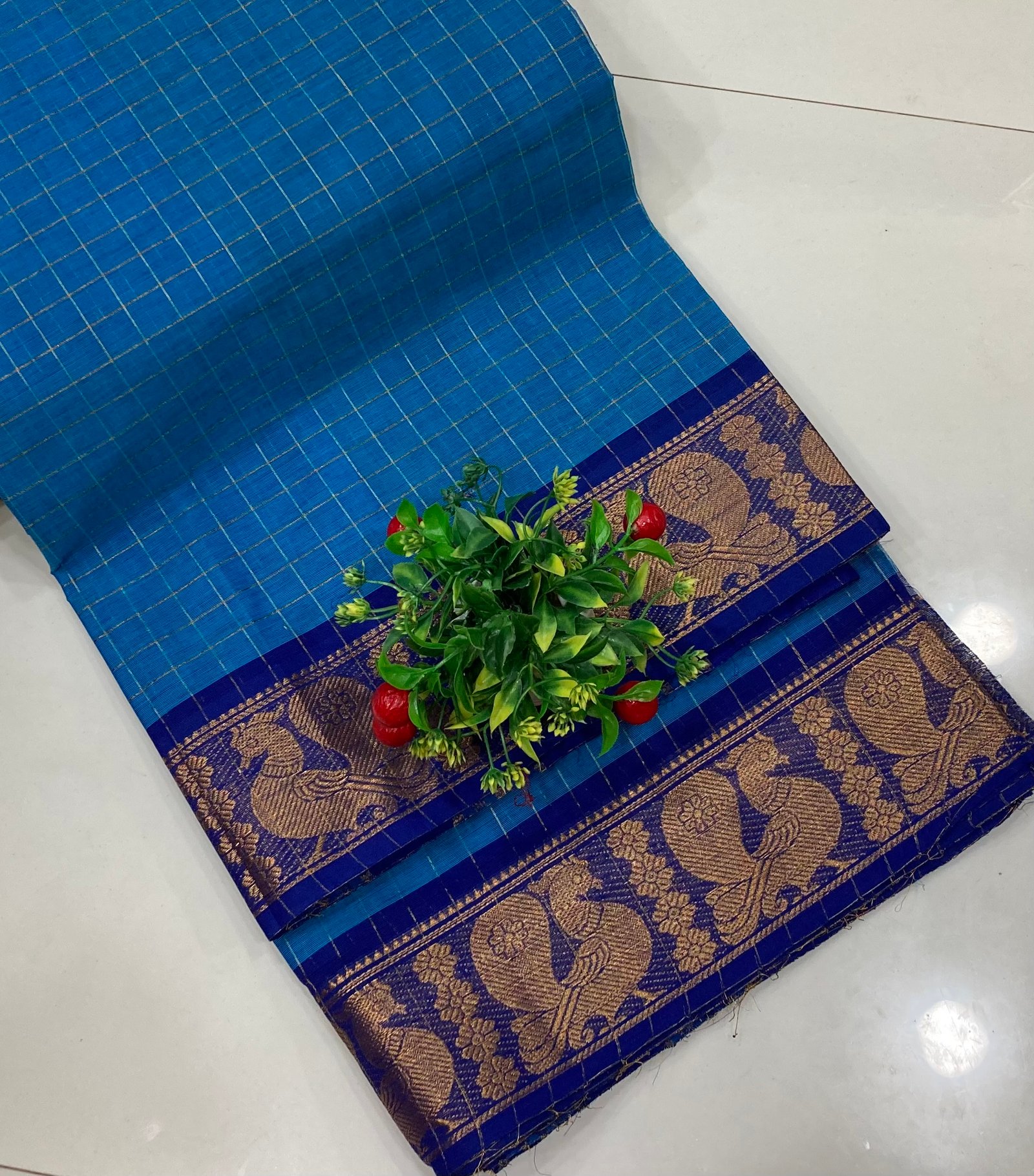 80s count pure cotton with zari checks